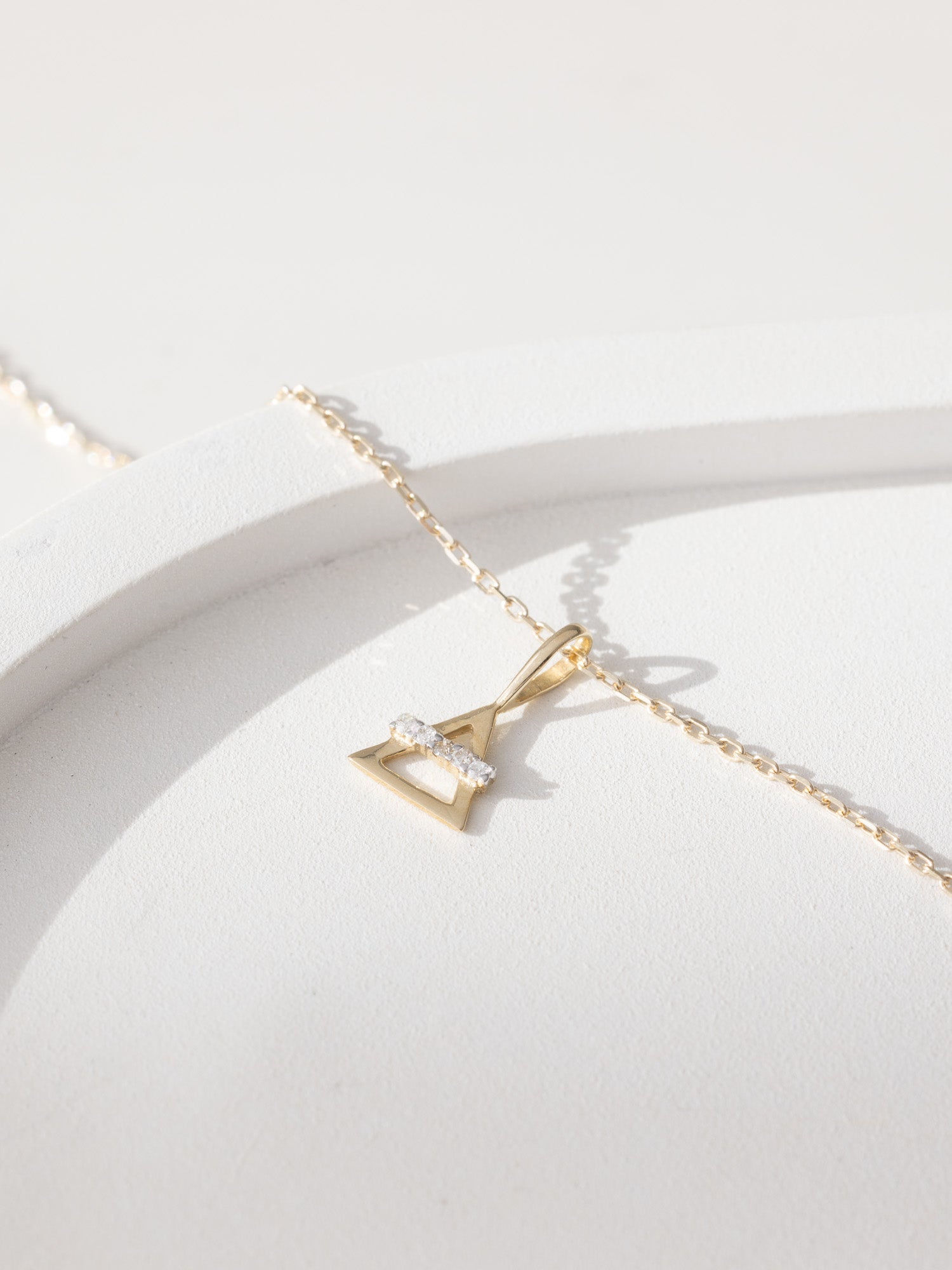 The necklace features an Air triangle charm in solid 9K gold that points upwards towards the sky, with a line of diamonds crossing through the middle, representing Air.