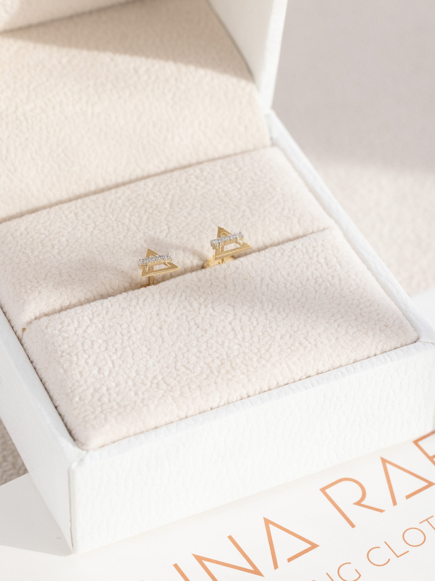 The Air Element Studs have a gold weight of 1.08 grams, with each side of the triangle measuring 5mm in length. These studs are perfect for stacking and have just the right amount of shine.