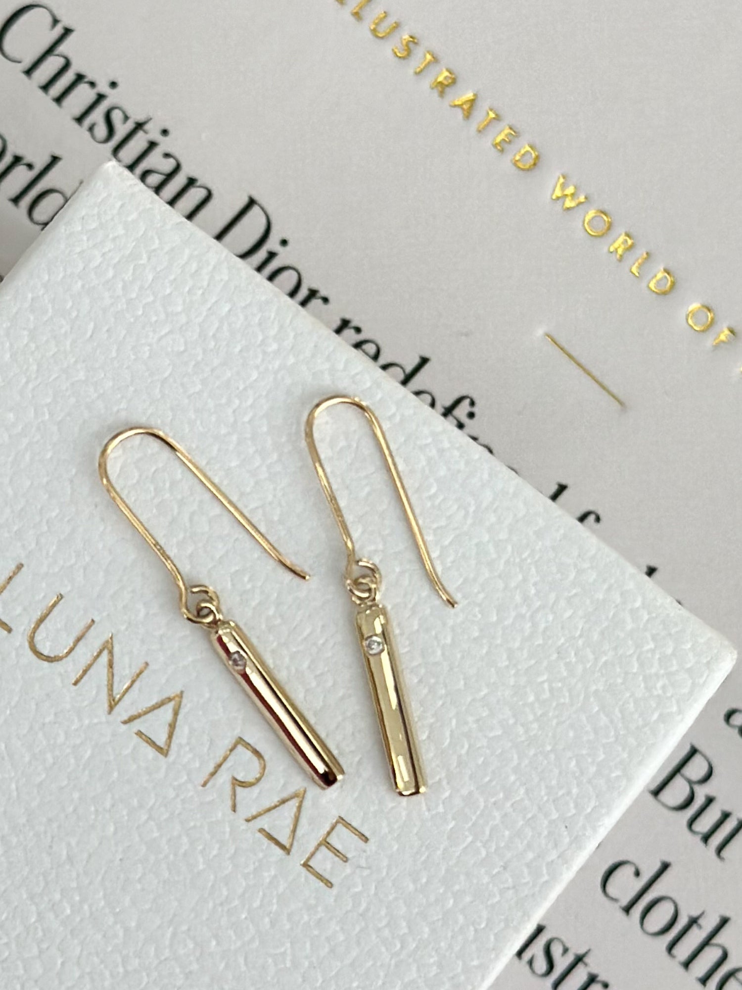 These earrings are 2.8cm long from the top off the hook to the base of the bar.
