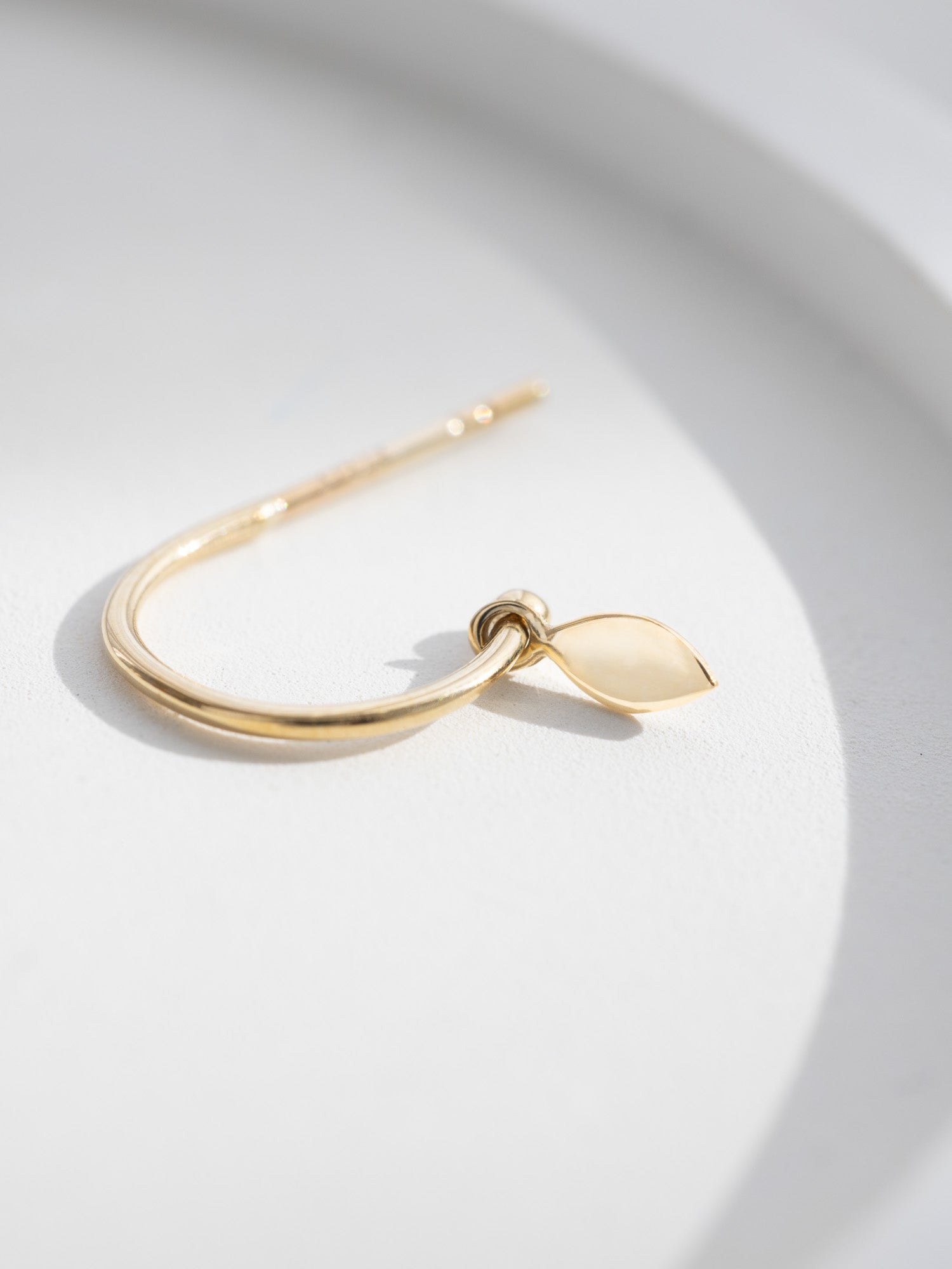 Crafted from solid 9K gold, these delicate hoops feature a 1.2mm wide dangling drop that perfectly catches the light, offering a hint of sophisticated sparkle to your look. The earrings are both simple and elegant, making them an essential part of your everyday wear.