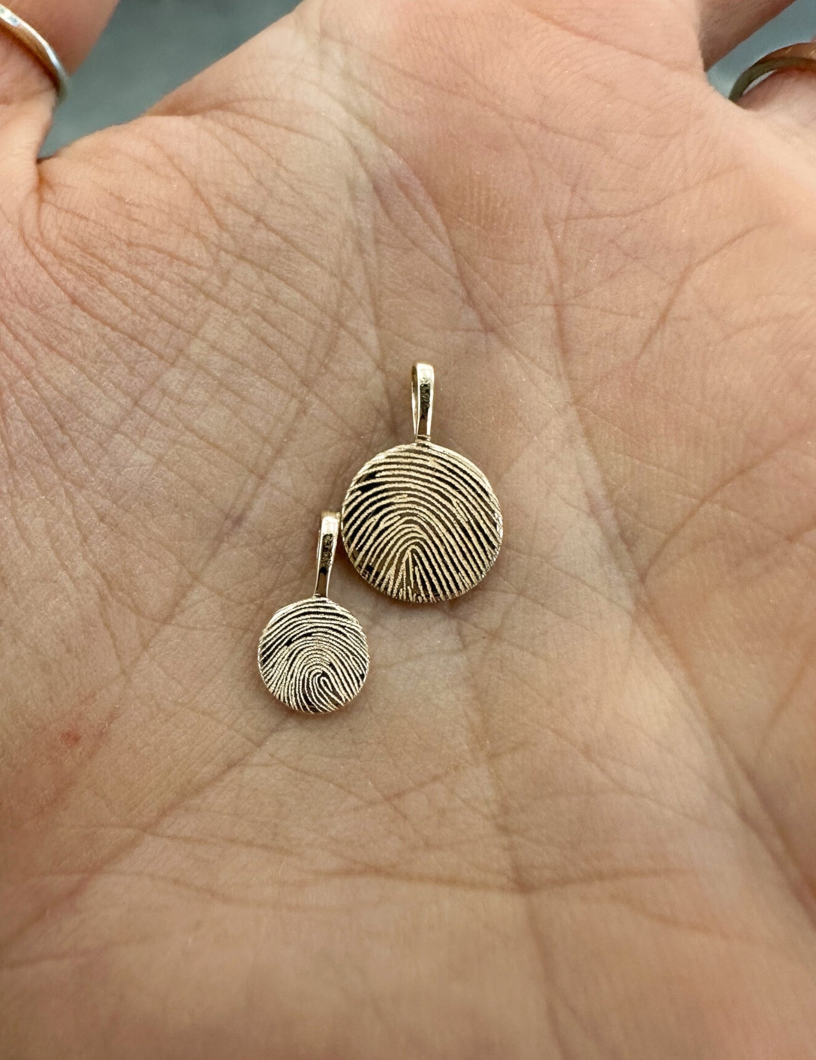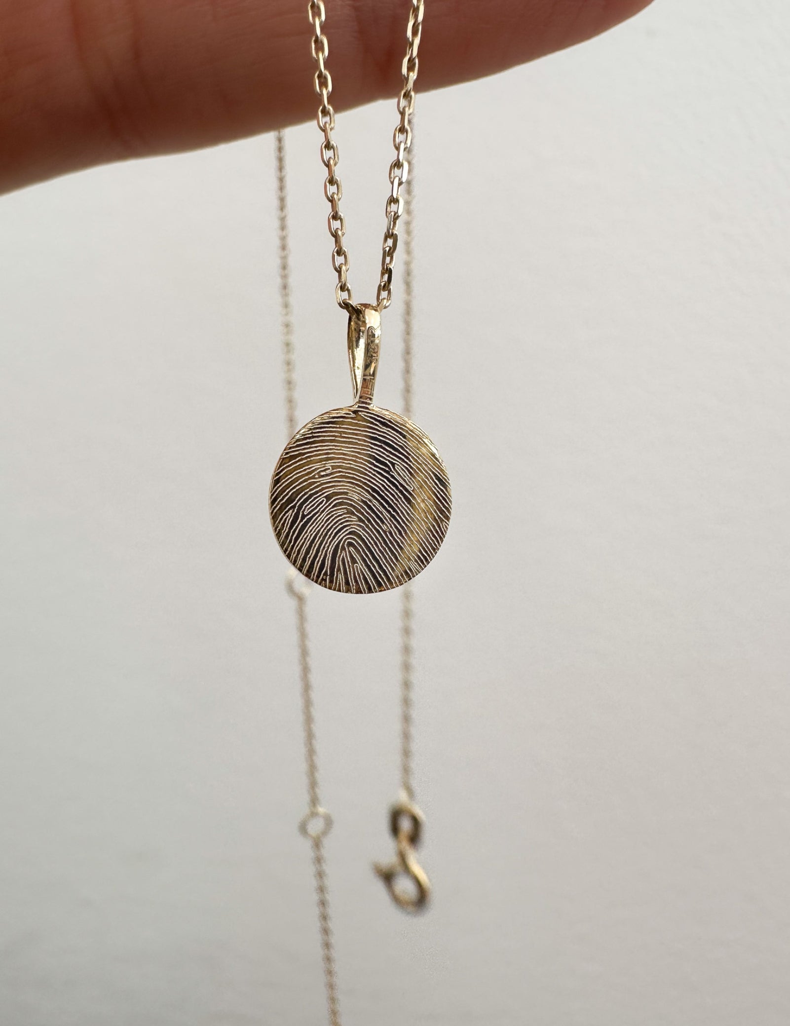 Hold onto what matters most with the Flat Disc Pendant. Crafted from solid 9K gold with a sleek, high-polish finish, this timeless piece comes in three sizes, ready to be engraved with a fingerprint, paw print, artwork, or a treasured memory—creating a keepsake that’s uniquely yours.