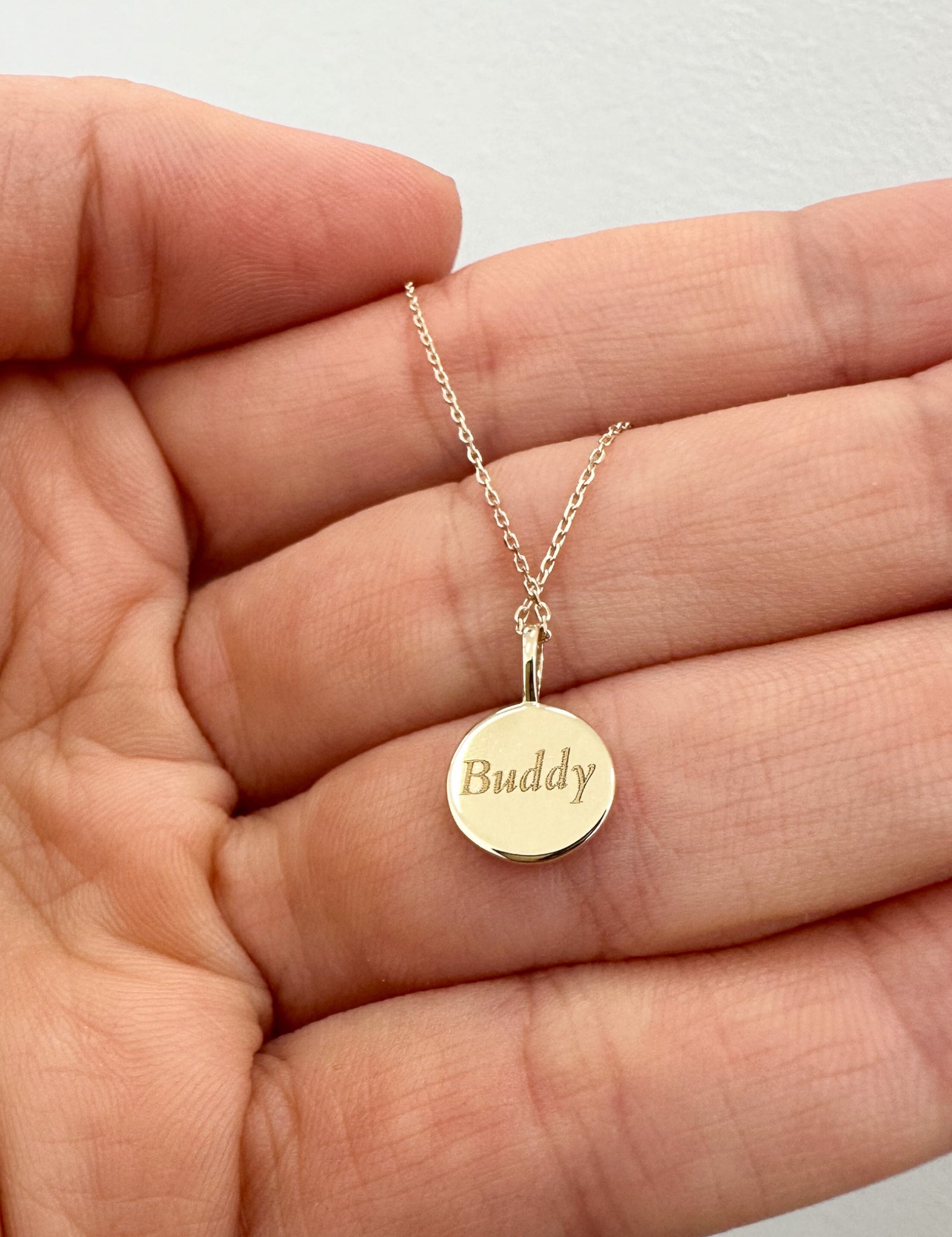 - Timeless Elegance: The flat disc pendant features a sleek, polished finish, providing the perfect canvas for engraving fingerprints, paw prints, or meaningful messages