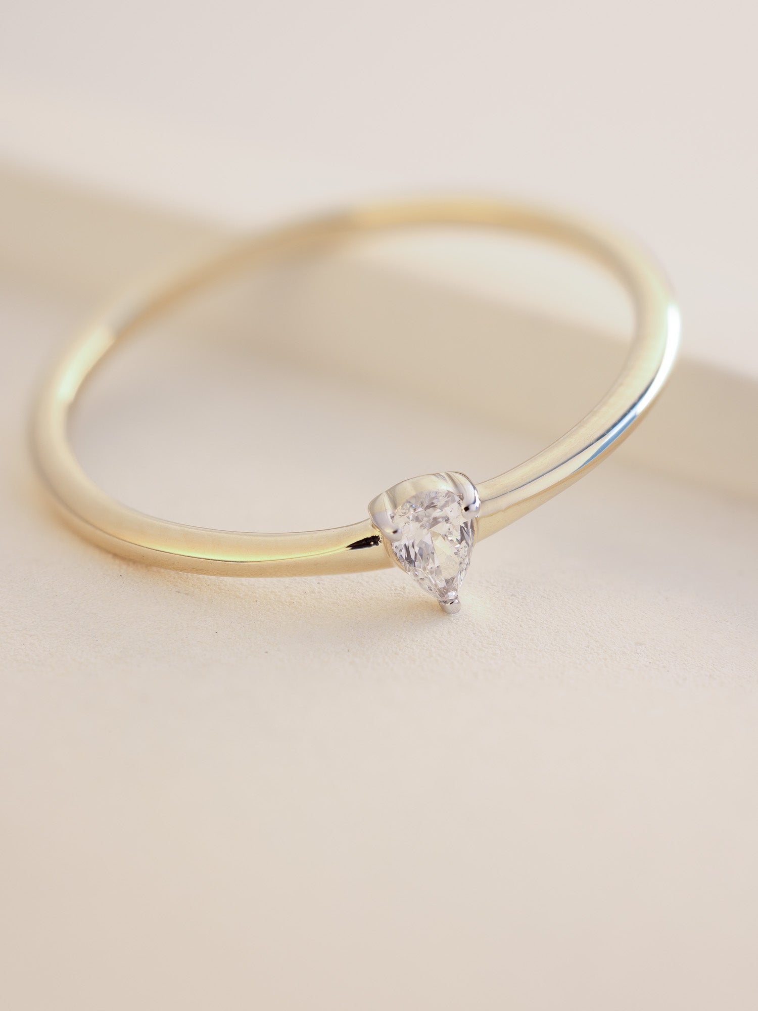 • Minimalist Design: The ring's minimalist style places emphasis on the pear-shaped diamond, making it an all-occasion piece.