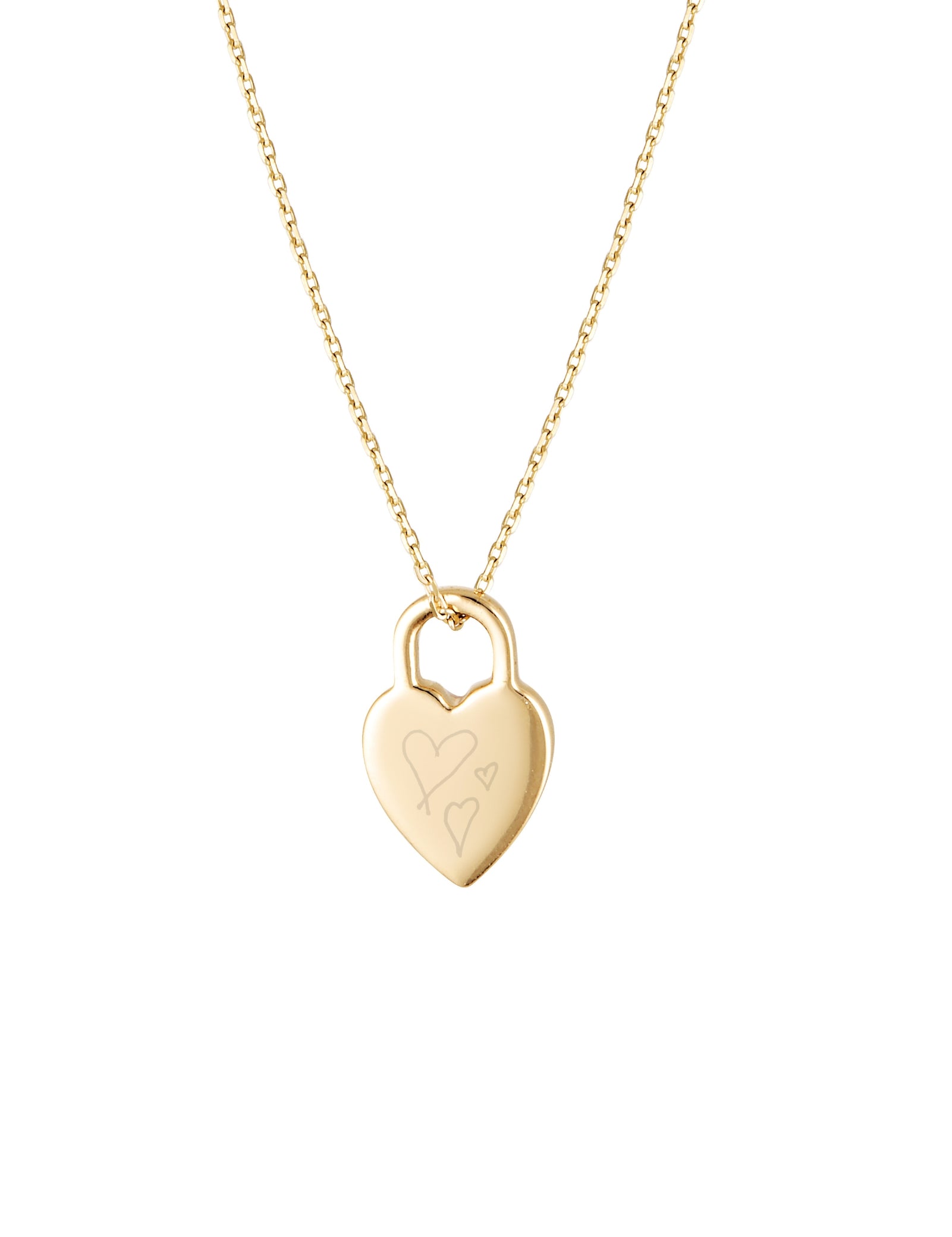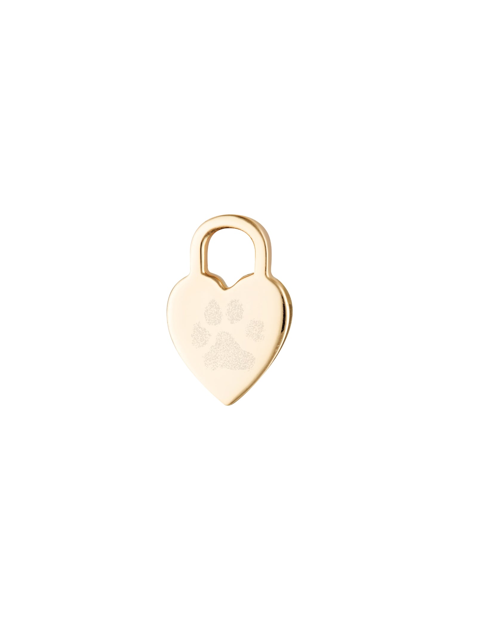 They say love leaves a mark, now you can keep it close, always. The Heart Pendant, crafted in solid 9K gold features a rounded top resembling a classic padlock and tapers into a pointed heart shape at the bottom. This is designed to hold the fingerprint, paw print, or art work of someone you love.