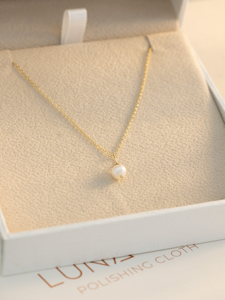 The Moonglade Necklace, embodying beauty, purity, and new beginnings, is a tribute to the goddess of love who, like pearls, is believed to have emerged from the sea. The necklace's charm captures the enchanting reflection of the moon on the ocean's surface, creating a piece as captivating as it is romantic.