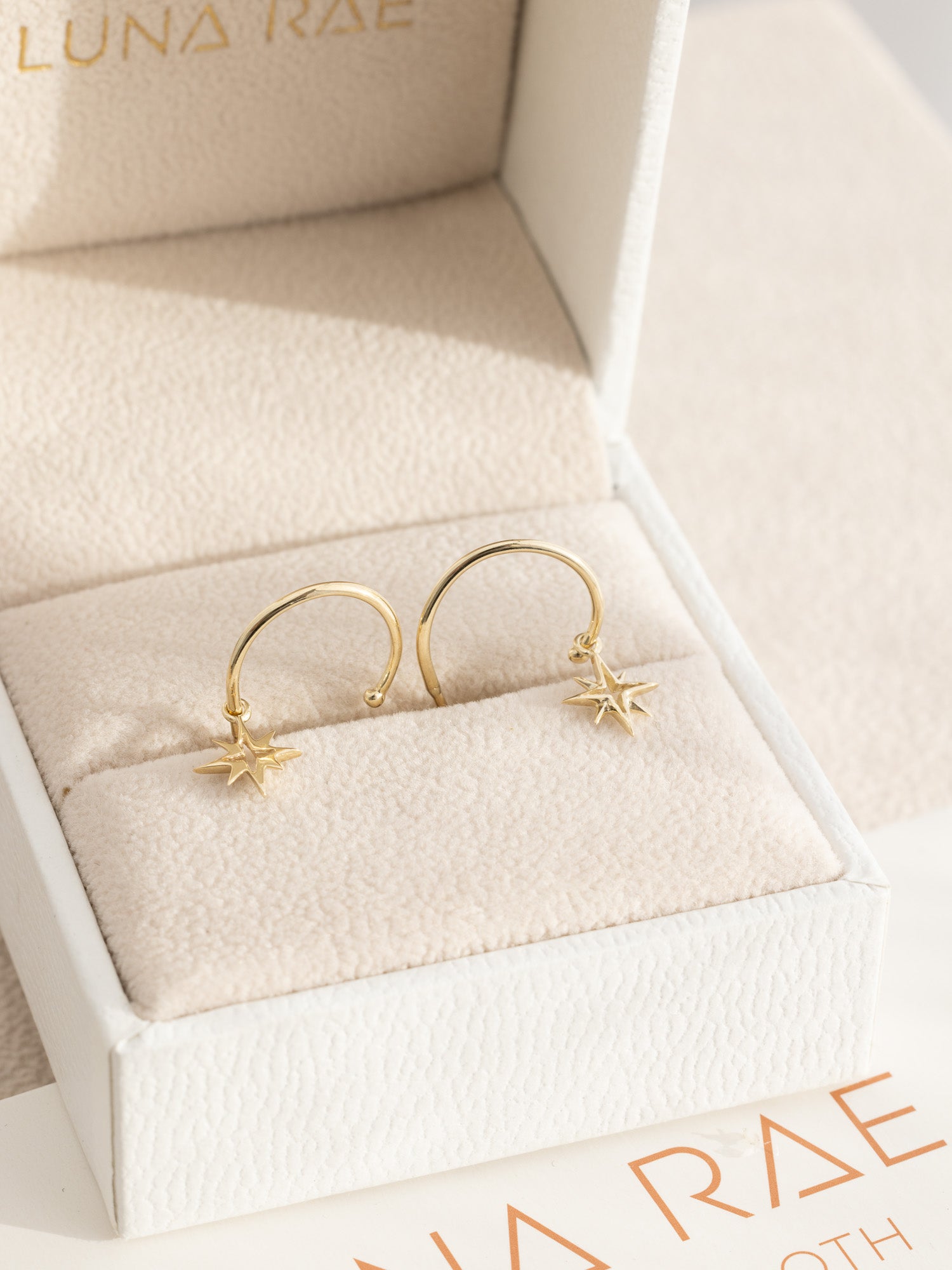 The design allows you to wear them in two ways you can showcase the North Star charm or opt for a sleek, plain gold hoop look.