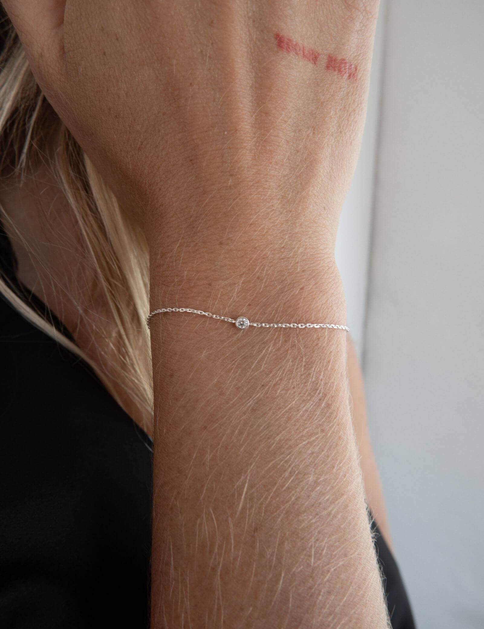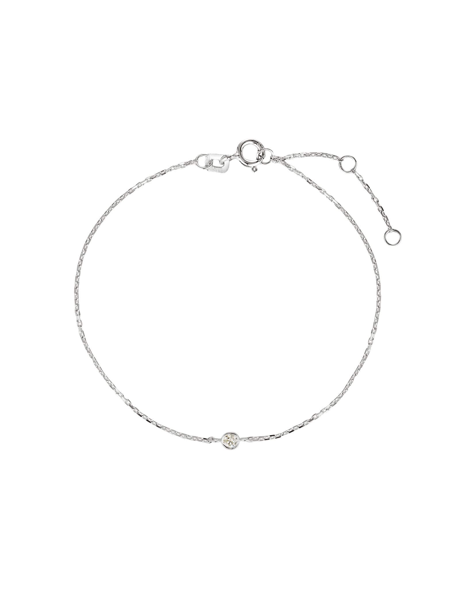 The Diamond Sky Bracelet features a 2.3mm in diameter diamond pendant.The brilliant cut diamond has a carat weight of 0.04. The chain is 6 inches with a 1-inch extension, providing a balance of delicacy and substance.
