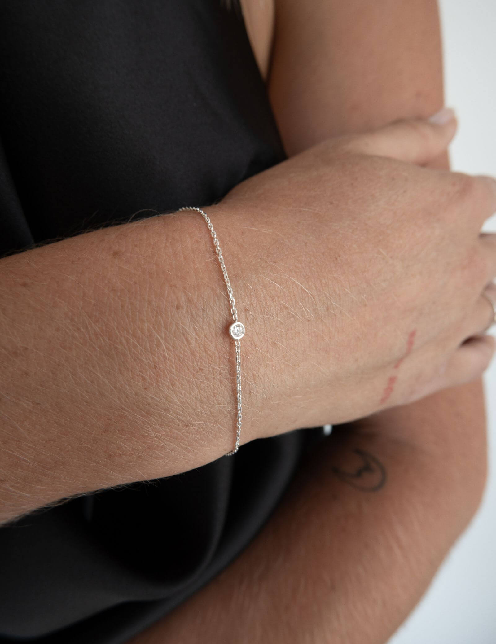 Experience the embodiment of light, life, and sun with the Diamond Sky Bracelet. The bracelet, crafted from sterling silver, features a solitary 0.04ct brilliant cut diamond.
