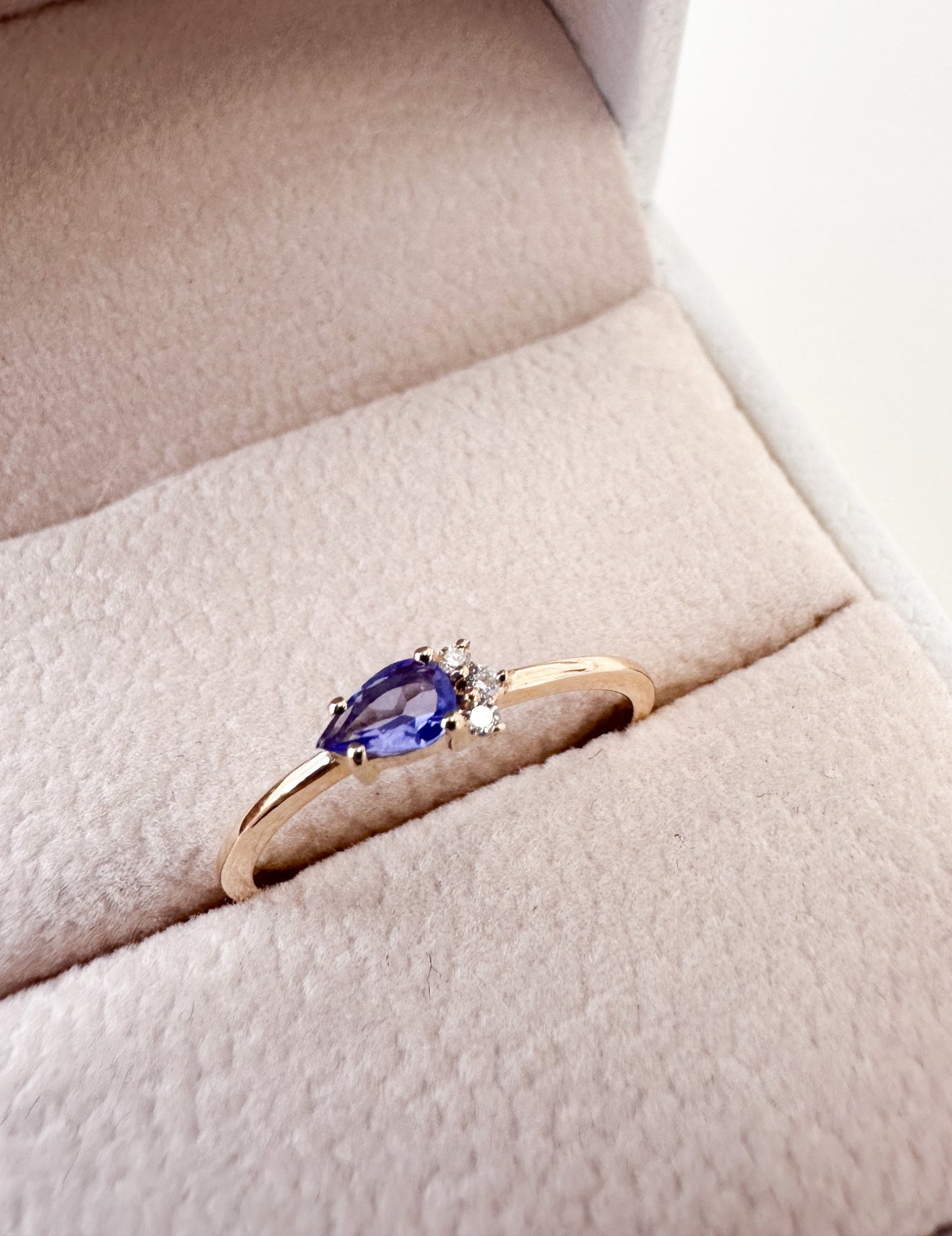 A masterpiece of elegance and enchantment, the Tanzanite Dreams Ring features a dazzling Tanzanite in a pear-cut that radiates deep blue-violet hues, symbolising mystery and transformation. Set in 9K yellow gold, this ring offers a luxurious, timeless appeal.