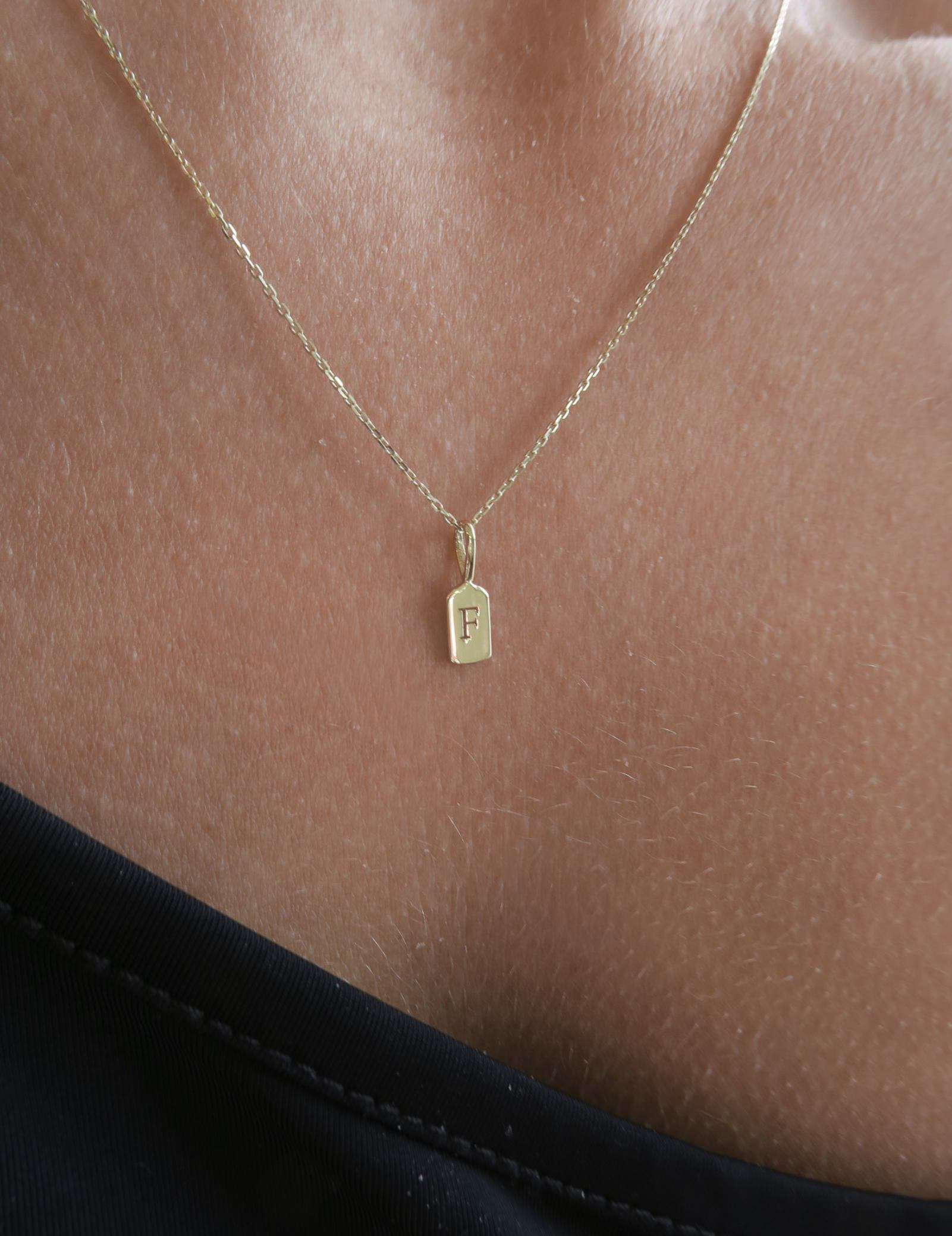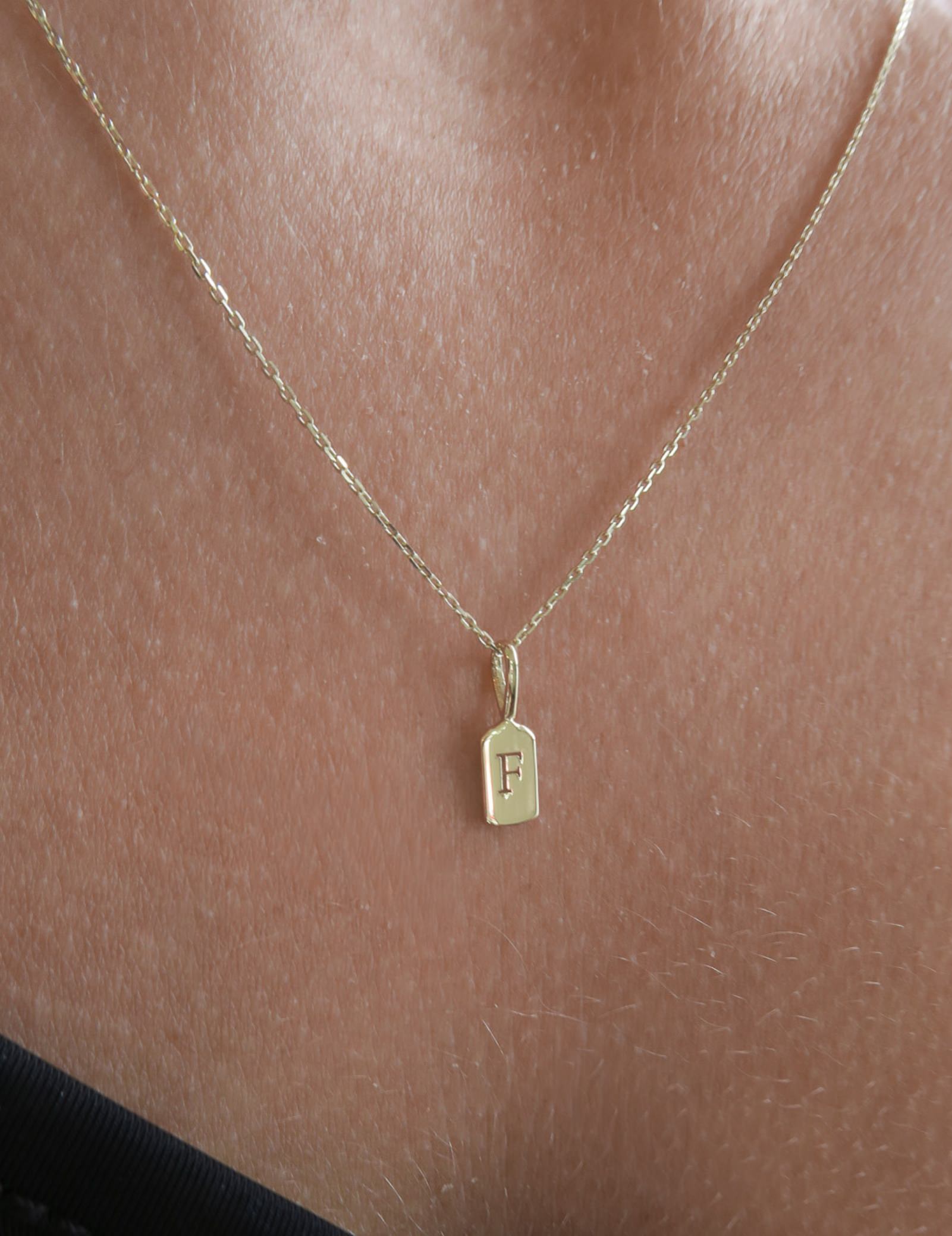 The Luna Letter F charm measures 11mm x 3.6mm, ensuring a subtle yet distinct presence on any outfit.