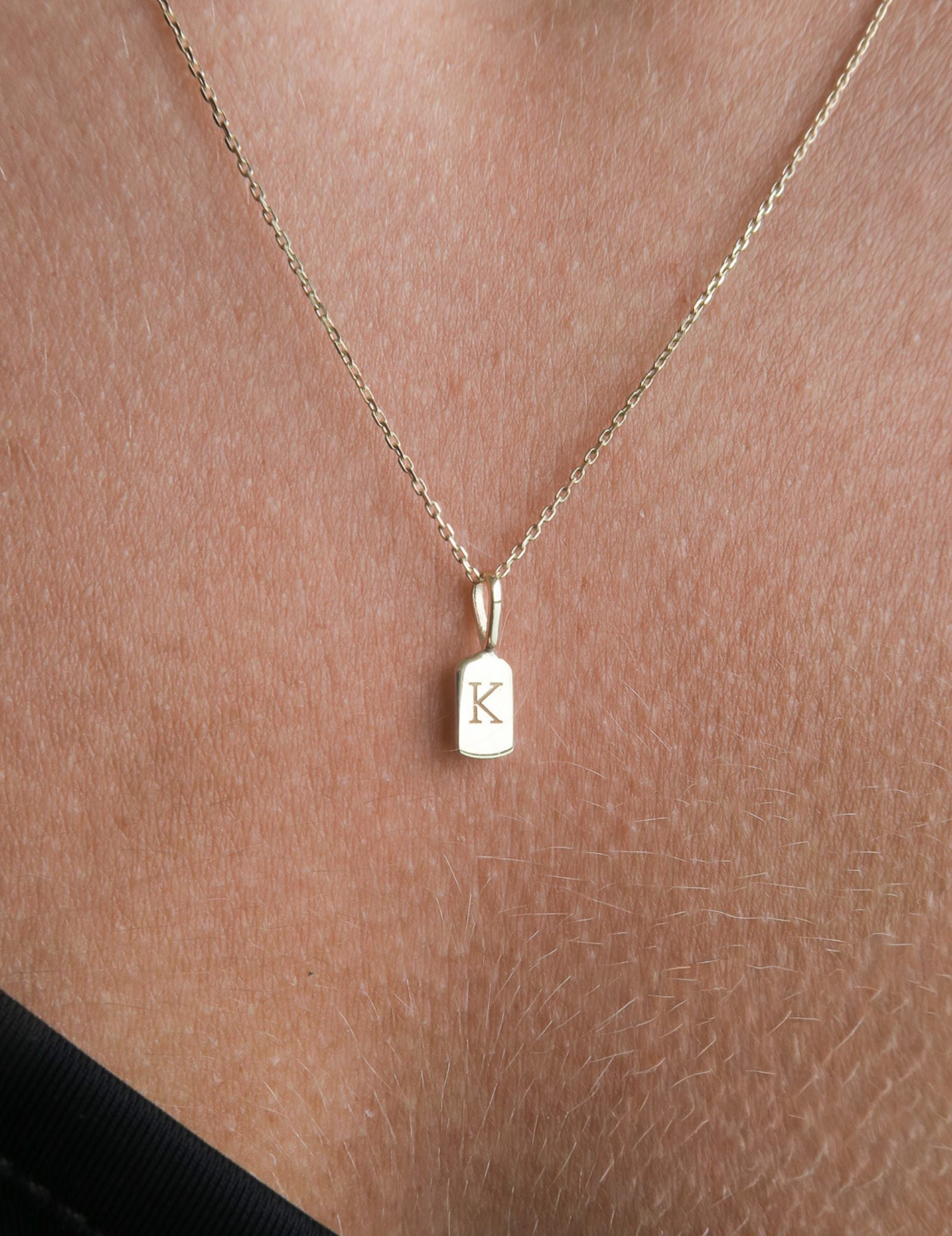 The Luna Letter K charm measures 11mm x 3.6mm, ensuring a subtle yet distinct presence on any outfit.