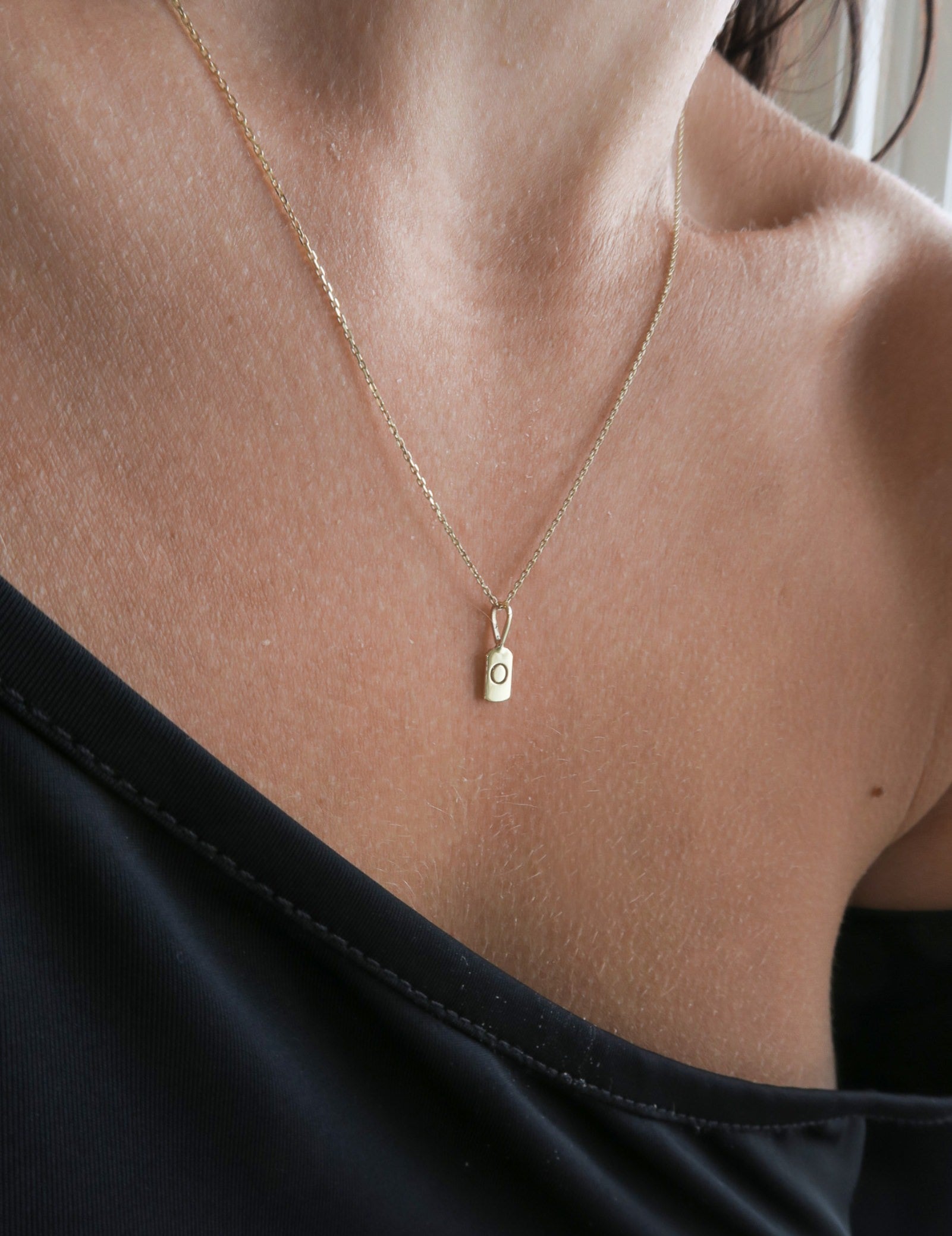 The Luna Letter O charm measures 11mm x 3.6mm, ensuring a subtle yet distinct presence on any outfit.