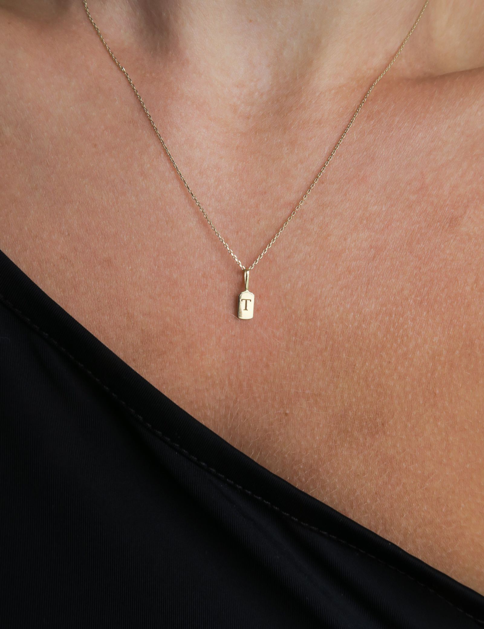 The Luna Letter T charm measures 11mm x 3.6mm, ensuring a subtle yet distinct presence on any outfit.