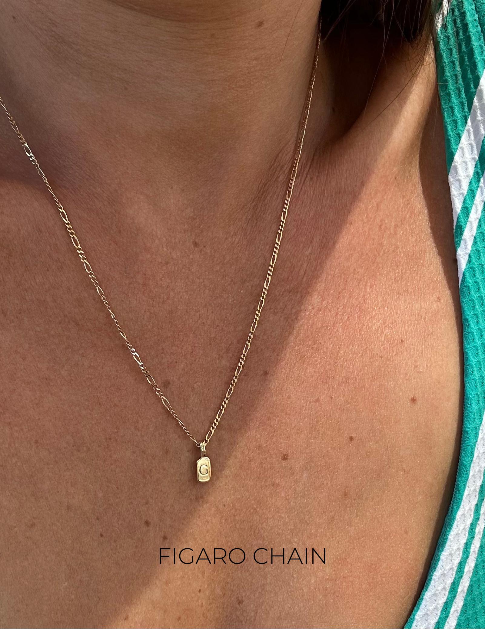 Alternatively, you may opt for the Figaro Chain, another sophisticated choice. Available in 40cm or 45cm lengths without an extension. It features a thickness of approximately 1.5mm, striking a balance between durability and refined style. The combination of the Luna Letter V charm with the Figaro Chain will result in a gold weight ranging from approximately 1.95 to 2.25 grams which are higher due to the chain's specifications.
